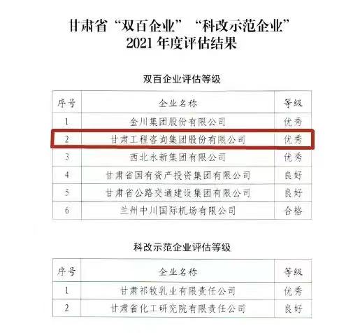 乐动·官方端网站在线获甘肃省2021年度“双百企业”评估“优秀”等级