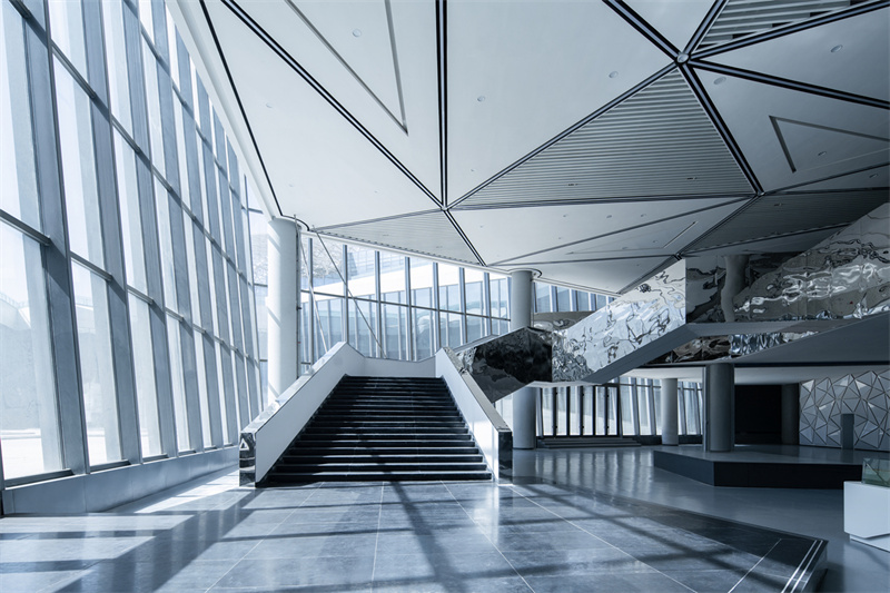 在设计过程中,设计团队深度融合“生态”与“创新”理念,将全生命周期绿色低碳理念贯穿始终,在场地规划、空间营造、技术整合与材料应用等方面实现了系统性创新突破。建筑布局紧密贴合榆中当地气候与地形特征,充分运用被动式设计策略,最大程度利用自然采光与通风,有效降低建筑运行能耗。技术应用上,项目集成高效地源热泵系统、建筑光伏一体化(BIPV)技术、智能能源管理与雨水回收利用系统等,构建起高效循环的资源利用体系。材料选择方面,大量采用本地化、可再生及低碳建材,融入具有甘肃地域文化特色的生态景观设计,使科创中心成为与周边自然环境和谐共生、彰显陇原风貌的绿色建筑典范。